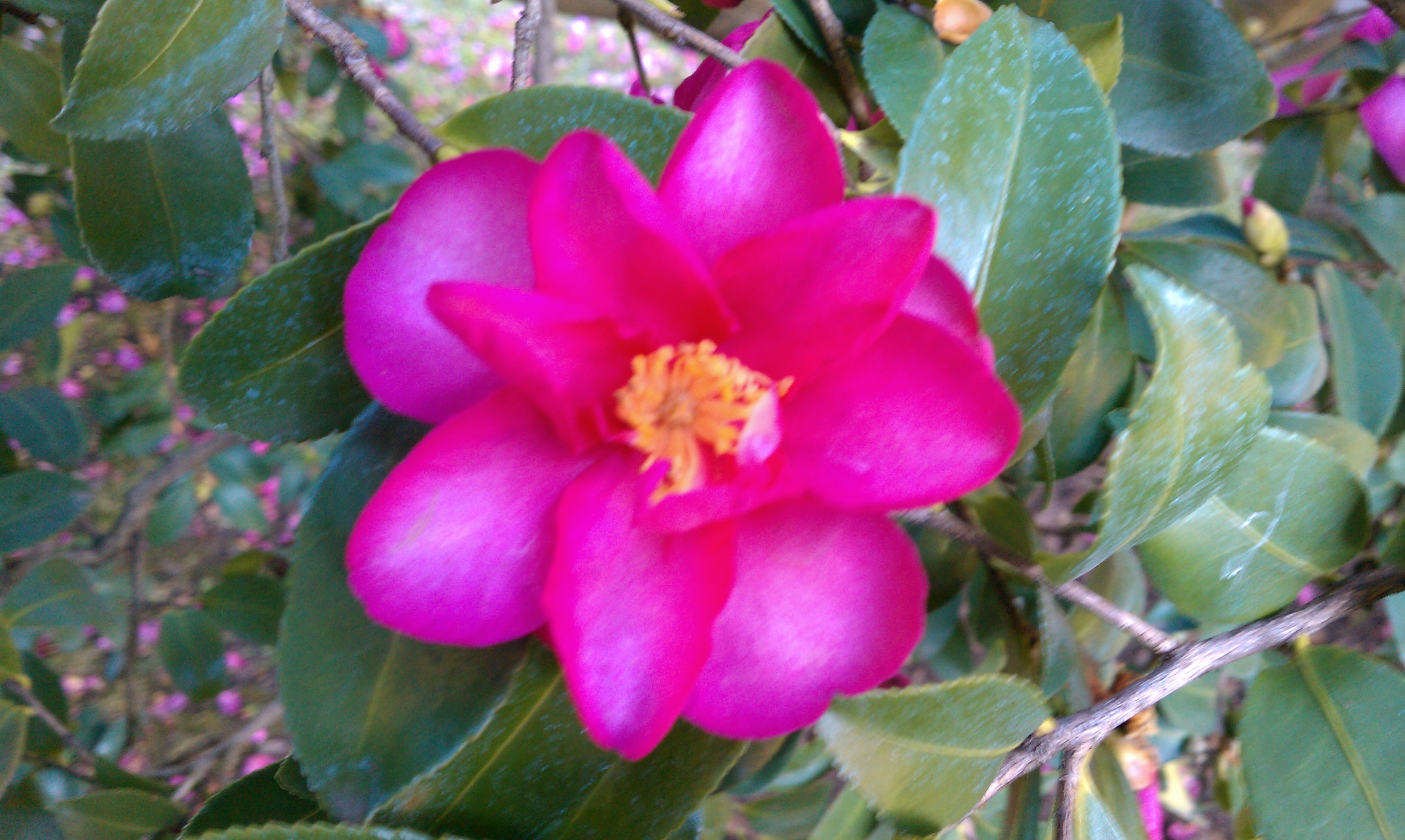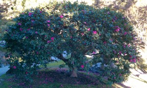 I took these pictures when my husband and I went to the Huntington Library & Botanical Garden in Pasadena. What I loved about this tree, besides the beautiful color of the flowers themselves, was how short and yet grand it looked with its branches stretched out so. I imagined our bulldog Biggie would love this tree for the shade it provides and because it’s low to the ground and round like him. Here’s a close up of one of the flowers…