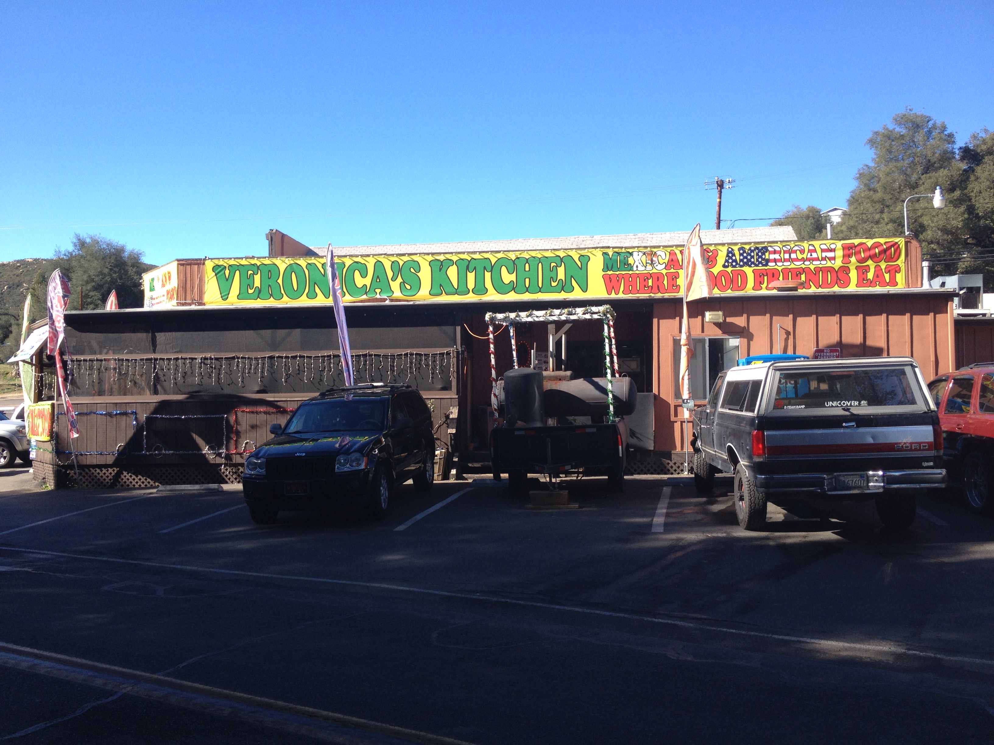 The following day we had breakfast at a restaurant nearby our camp site which was okay so we decided to give it another shot and have dinner there. I got the Fish Fry which did not disappoint, and when it came time for dessert since I was still in the honeymoon phase from the previous nights delicious experience, I decided we needed to order another slice of apple pie – with ice cream of course. We had each maybe taken one bite of the pie, which sadly just didn’t quite compare to the one I had had in Julian the night before, when I reached for my second bite of ice cream and noticed something got caught onto my fork. I thought it was something from the pie and then realized as I pulled on it that it was actually a very long white/blond hair!!!! Ewwwwwww!!!!! Needless to say we did not finish that pie or go back to that restaurant. With that very gross experience still very fresh in our minds, the next morning we set about our day again and as we drove out of our camping site we asked the rangers if they had a restaurant they could recommend for breakfast, but perhaps in the opposite direction of Julian since we had already been there. So the ranger told us about Veronica’s Kitchen in the town of Descanso. Well, let me tell you, that sure took our mind’s off the hair in the apple pie slice! Veronica’s Kitchen served fresh made to order Mexican and American food and not only was it good but it was also a fairly decent price. Plus the ladies there were so nice and friendly, we had a great experience there. We ended up ordering lunch and dinner to go!