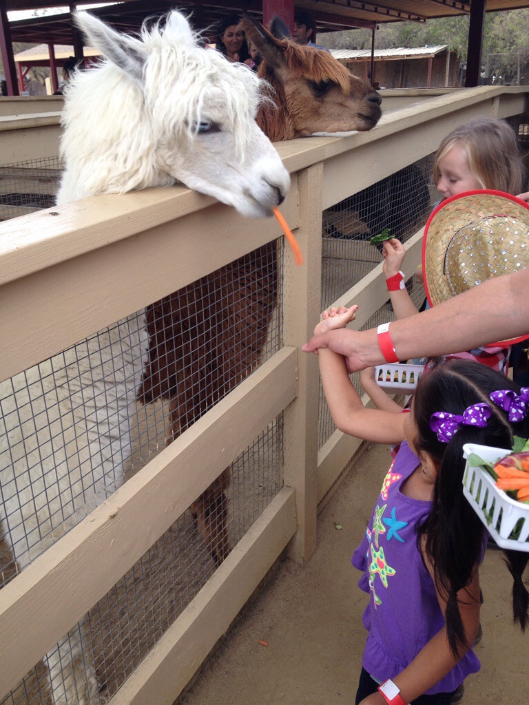 We got there in time to get one of a few free tickets the hosts had for the kids to feed the animals and to ride the train. Some animals my daughter hadn’t seen in person so when she saw the lama she says to me all excited look mama the cute horse-y!
