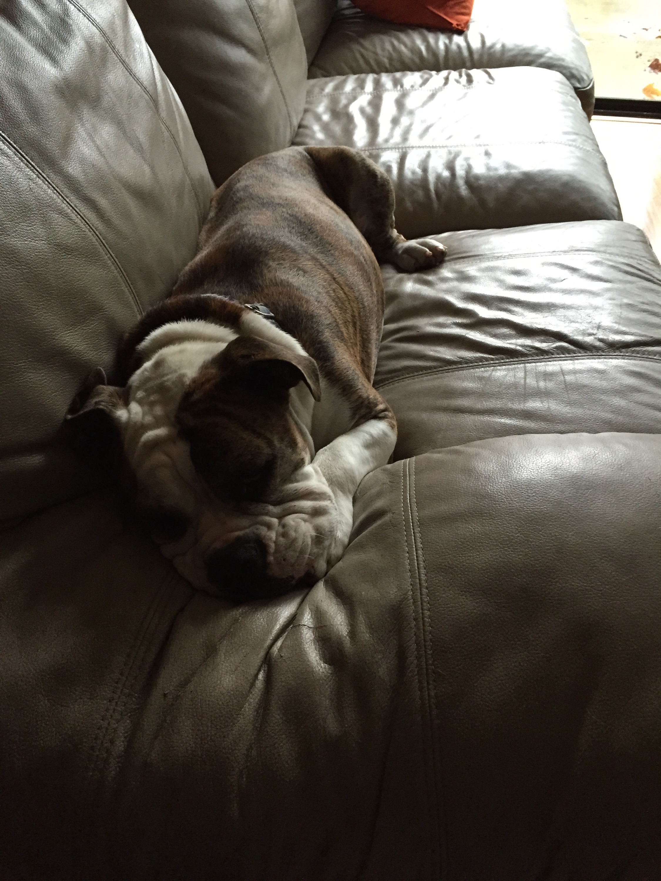 He is as tenacious as they come. So when it’s walk time, while he does tend to have good moments of listening, when he sniffs something he wants, it inevitably turns into tug of war – with us winning of course, but it takes a great deal of effort and pull. When we first rescued him at age 1, I thought he would be the death of me. The bulldog was walking me! And at age 6 now, while the pulling has decreased significantly and he’s fully aware who the alpha is (yes my husband and I) there are still those bulldog moments.