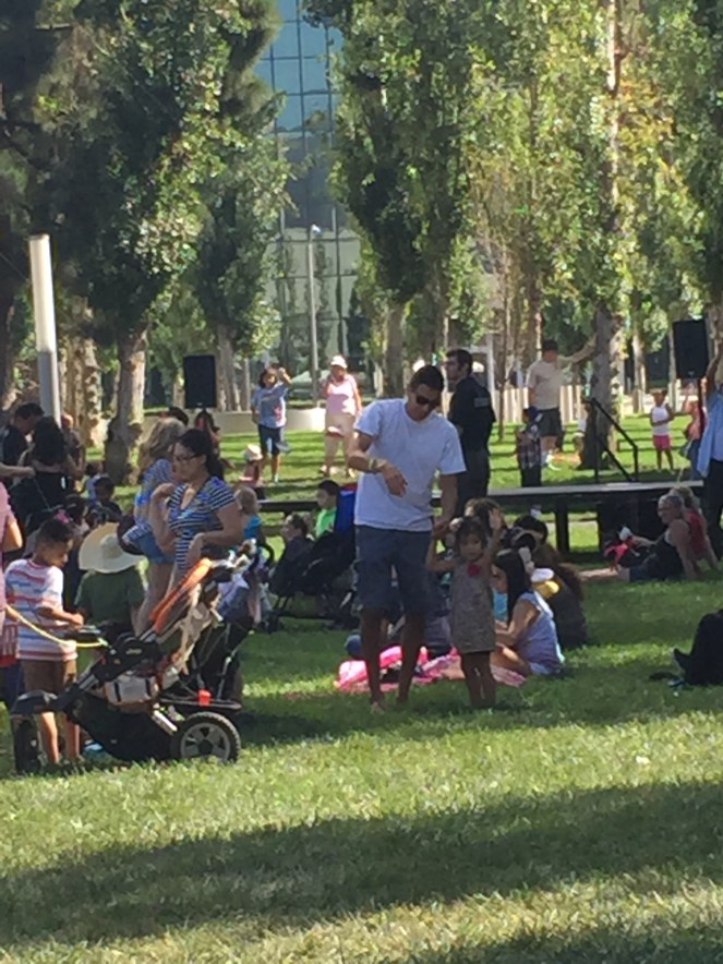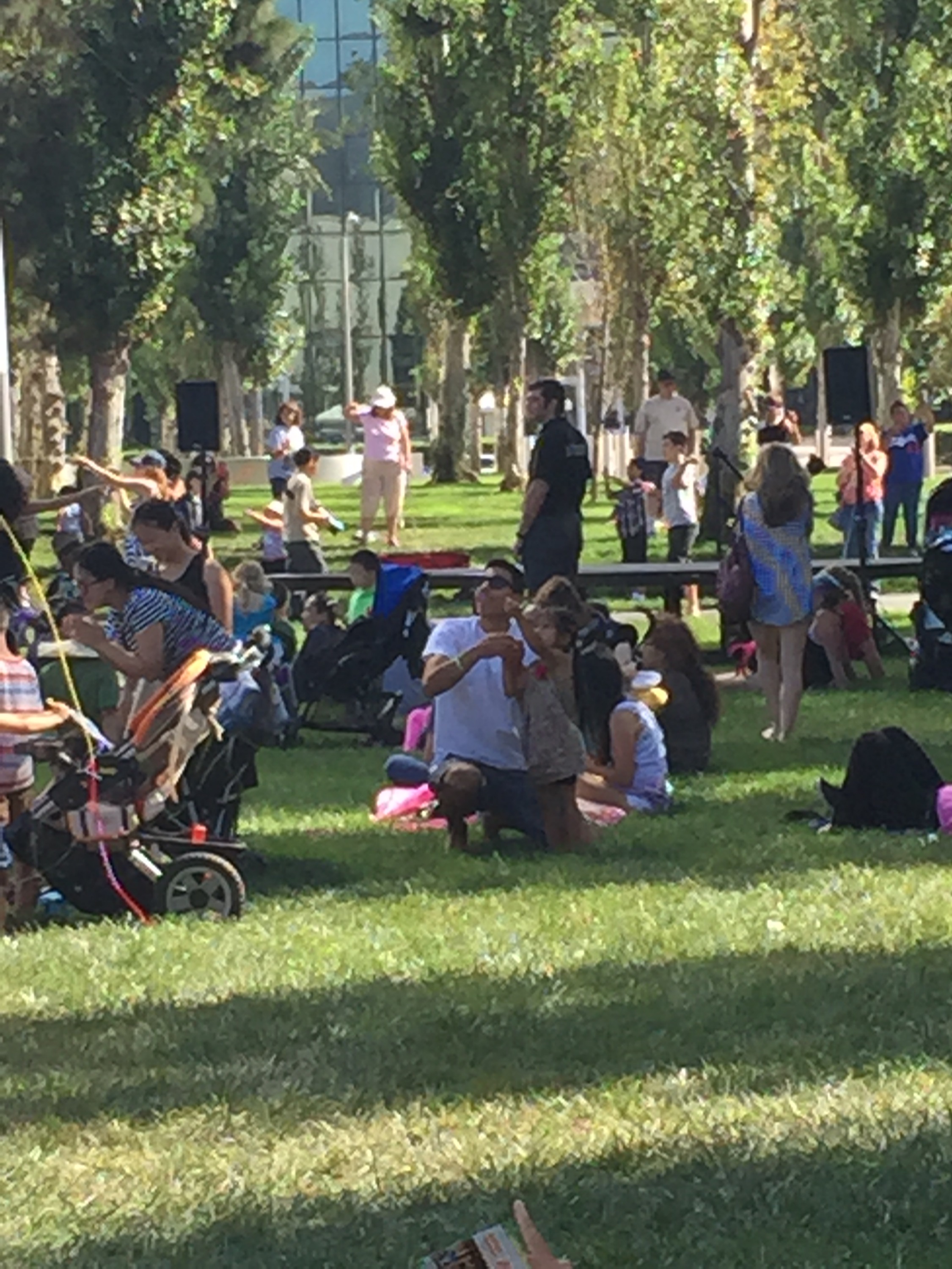 We went to the Free Kite Festival outside Segestrom Center for the Arts yesterday. We walked around the different tables to check out the different crafts where Celesfe decorated a visor and then we made our way to a spot on the grass to watch the kite flying. My husband made a quick trip home and picked up the kite we had for Celeste.