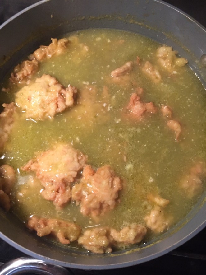 For starters it’s my birth month, woohoo! I get to ask my mom for my favorite meal for my birthday. I haven’t decided yet but it’s either going to be a delicious Mexican dish known as molé or Tortas de pollo in green sauce. My sis in law just made the tortas de pollo for my brother’s birthday. Check out the deliciousness…