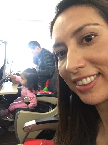 So there’s the 3 seater and then I’m right across with an empty seat next to me that became a total blessing. The girls were super excited, especially when they realized they had a tv all to themselves to watch shows to their little hearts content. Can you believe I didn’t have to pull a single toy out of our carry on during the entire flight?!