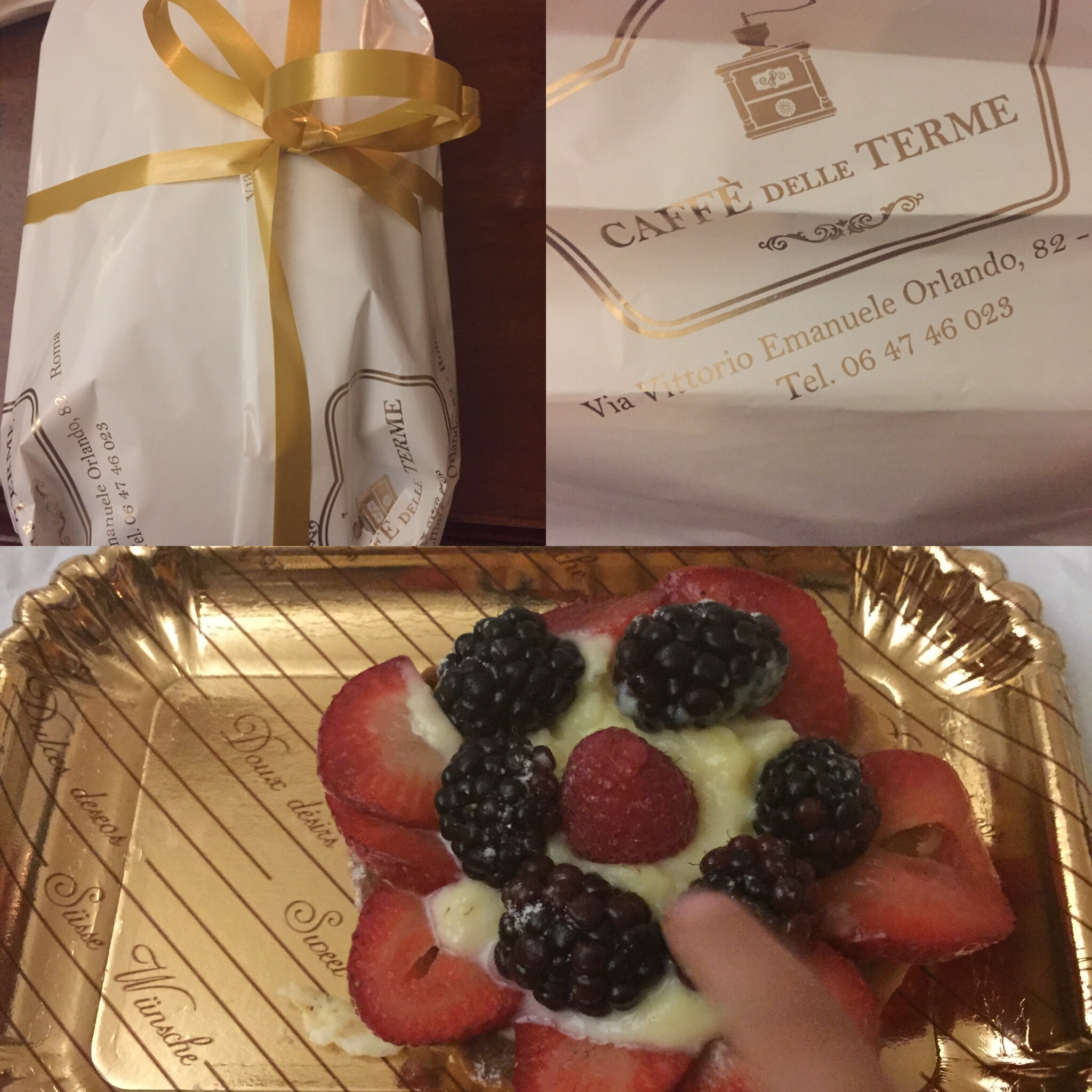 That was our last night in Rome. We went straight to the hotel and rested. The girls were so exhausted that my husband brought us food to go from that delicious little caffe we ate at the first night. He even ordered a delicious treat for me! Yum.