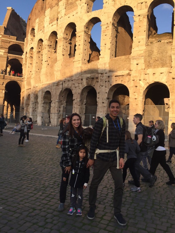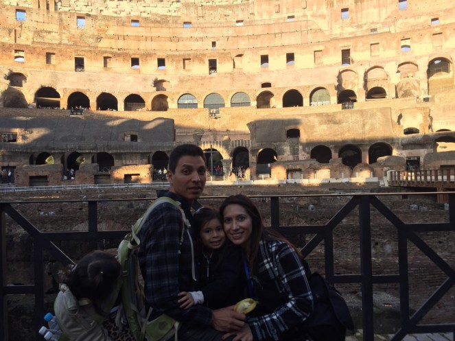 We did some awesome sight seeing that day and visiting the sites went pretty smoothly. We had a minor glitch when we got off the tour bus at the Coliseum because the couple of minutes it took us to get Elysse into the child carry backpack caused us to lose our group. We found them fairly easily but of course not without a bit of stress and frustration. I was so distraught with trying to find the group that when the second street vendor got in my face about buying a selfie stick I snapped in his face “No!!”