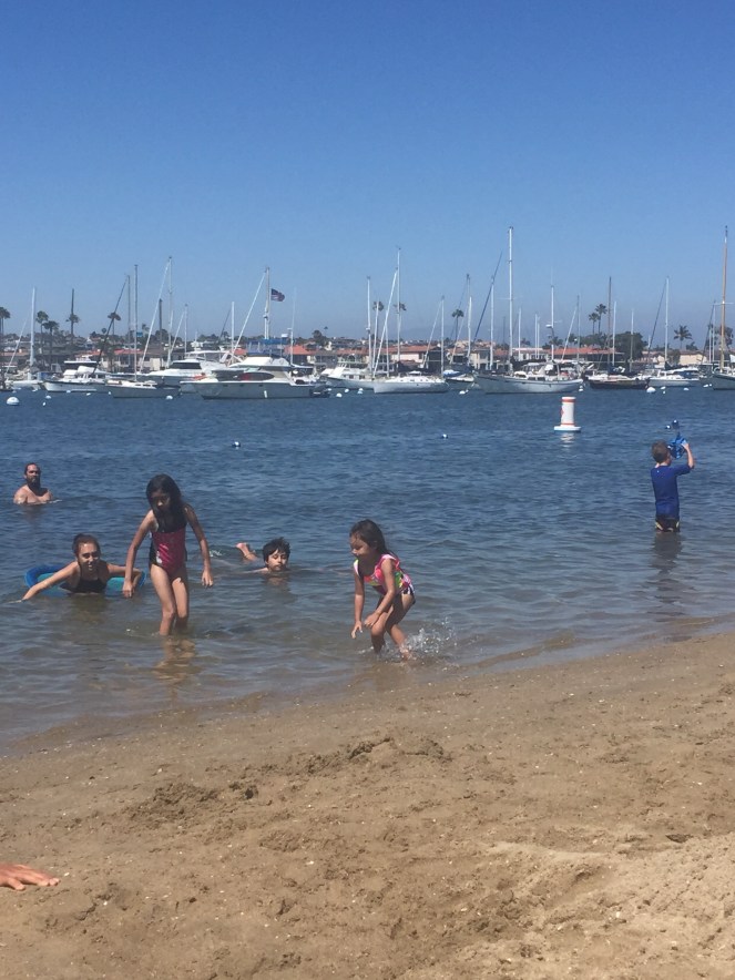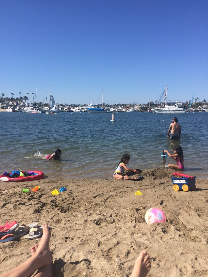 I’m not a beach person at all (it’s mainly the sand I can’t stand haha) but we had an amazing time there last week with my brother and his family who are visiting us from Arizona. Have you been to Marina Park in Balboa Beach?! This place is awesome! There’s a grassy area followed by a playground and the beach water just below. There’s no high tides in this area so it’s perfect for the little ones! I can’t wait to go back. I forgot to get pictures of the playground and grass area, but check out the water!