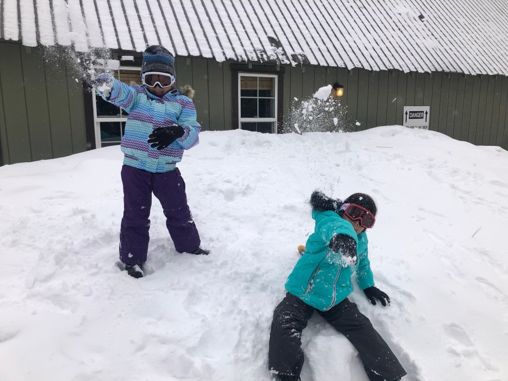 The girls loved seeing the lake completely covered in snow and to just play and have fun. Elysse gave snowboarding a shot and Celeste had a blast sledding.